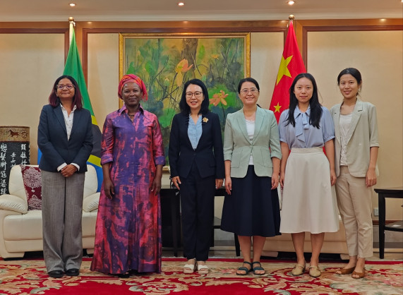 On July 7, Chinese Ambassador to Tanzania H.E. Chen Mingjian met with UN Resident Coordinator in Tanzania Susan Ngongi Namondo at the Embassy. They exchanged views on furthering tripartite cooperation among China, Tanzania and UN.