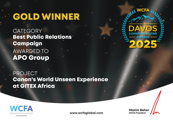 APO Group (www.APO-opa.com), the leading Pan-African communications and media relations consultancy, has earned two major accolades at the prestigious 2025 Davos Communications Awards held on 11 April 2025, in Davos, Switzerland: a Gold Award for Canon’s ‘World Unseen’ campaign at GITEX Africa and a Bronze Award for the ‘10 Years of Miraisha’ celebration. The Davos Communications Awards, presented by the World Communications Forum Association (WCFA), recognise exceptional communications firms, experts, and internal teams that have produced excellence and achieved quantifiable impact worldwide.