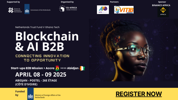 The EU-Africa Chamber of Commerce (EUACC) (www.EU-Africa-Chamber.org) is pleased to announce the Blockchain&AI B2B, taking place in Abidjan (Côte d’Ivoire) on 8-9 April 2025, with the support of the International Trade Center (ITC) and the Netherlands Ministry of Foreign Affairs under the Netherlands Trust Fund V Ghana Tech Project.