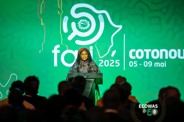 “I am delighted to see that an important subject such as Science and Innovation, a crucial subject for the growth of Africa and our region, is generating so much enthusiasm at the highest level with the remarkable presence of personalities and luminaries from the political, scientific, cultural and sports worlds,” said Professor Fatou SOW SARR, ECOWAS Commissioner for Human Development and Social Affairs on Monday, May 05, 2025 in Cotonou, Benin, during the opening ceremony of the 2nd edition of the African Forum for Research and Innovation (FARI 2025). Organized as part of the fiftieth anniversary of ECOWAS and around the theme “African Youth, Innovation and Entrepreneurship: Building a Sustainable Future”, the event attracted an audience of senior political and administrative personalities from Benin, as well as representatives and young startups and scientists from Member States.
