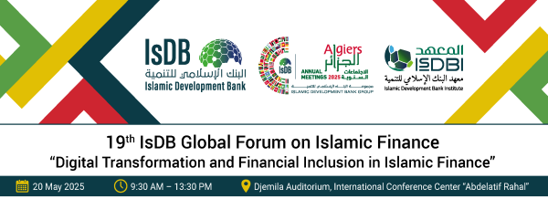 The Islamic Development Bank Institute (IsDBI) (https://IsDBInstitute.org/) is pleased to announce the 19th edition of the IsDB Global Forum on Islamic Finance to be held in Algiers, Algeria, on 20 May 2025, in conjunction with the IsDB Group Annual Meetings.
