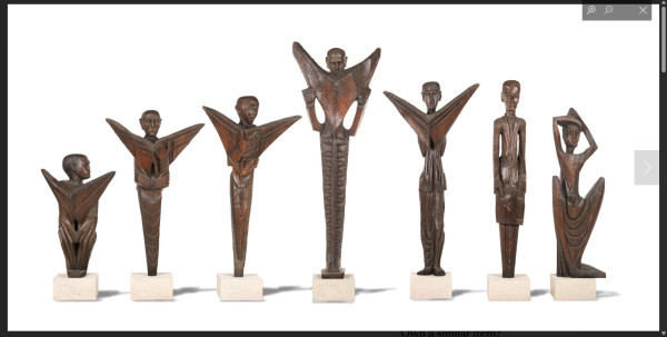 Tayo Adenaike, Jacob Afolabi, Sàngódáre Gbádégesin Àjàlá, Adebisi Akanji, Justus D. Akeredolu, Jimo Akolo, El Anatsui, Chike C. Aniakor, Abayomi Barber, Georgina Beier, Alexander “Skunder” Boghossian, Jimoh Buraimoh, Avinash Chandra, Nike Davies-Okundaye, Ndidi Dike, Uzo Egonu, Ibrahim El-Salahi, Afi Ekong, Erhabor Emokpae, Ben Enwonwu, Sir Jacob Epstein, Okpu Eze, Adebisi Fabunmi, Lamidi Olonade Fakeye, Agboola Folarin, Buraimoh Gbadamosi, Jonathan Adagogo Green, Yusuf Grillo, Felix Idubor, Ladi Kwali, Akinola Lasekan, Jacob Lawrence, Valente Malangatana, Naoko Matsubara, Demas Nwoko, Olu Oguibe, Rufus Ogundele, J.D Ojeikere, Emmanuel Okechukwu Odita, Simon Okeke, Uche Okeke, Olowe of Ise, Asiru Olatunde, Oseloka Okwudili Osadebe, Aina Onabolu, Bruce Onobrakpeya, Ben Osawe, Muraina Oyelami, Ru van Rossem, Karl Schmidt-Rottluff, Gerard Sekoto, Twins Seven Seven, Ahmad Shibrain, F.N. Souza, Ada Udechukwu, Obiora Udechukwu, Etso Clara Ugbodaga-Ngu, Solomon Irein Wangboje, and Susanne Wenger.