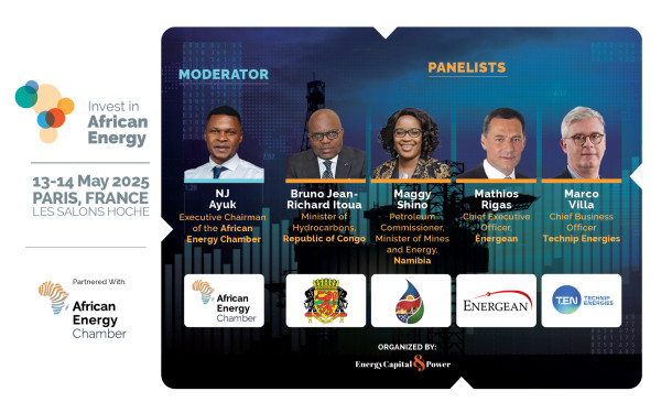 The panel will be moderated by NJ Ayuk, Executive Chairman of the African Energy Chamber, and will feature: Bruno Jean-Richard Itoua, Minister of Hydrocarbons, Republic of Congo; Maggy Shino, Petroleum Commissioner, Minister of Mines and Energy, Namibia; Mathios Rigas, CEO, Energean; and Marco Villa, Chief Business Officer, Technip Energies.