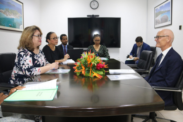 The Principal Secretary for Foreign Affairs, Ambassador Vivianne Fock Tave received the outgoing Ambassador of the Kingdom of Norway to the Republic of Seychelles, H.E. Mr Gunnar Andrea Holm at Maison Quéau de Quinssy on Tuesday 01st July 2025.