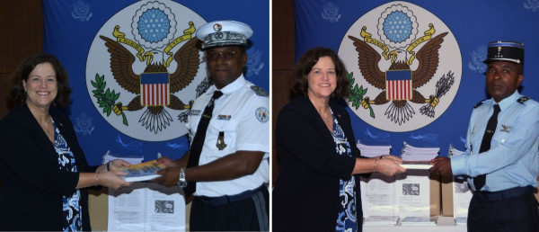 Today, U.S. Chargé d’Affaires Stephanie Arnold and Acting DCM Richard Hays presented National Police Academy Director Commissaire Divisionnaire de Police BEN HOUSSEN Evariste and Gendarmerie Academy Director Colonel RABARISON Tina Luc Olivier additional books and teaching resources from the Embassy, including materials authored by American law enforcement experts, to further strengthen their day‑to‑day training.
