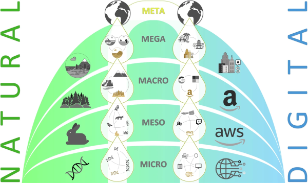 The scientists formulated this idea as the 5M System (5M Framework), which describes the digital realm in ecological terms and draws analogies between natural and digital phenomena across five levels: Micro (“genes”) — elements of technology, knowledge, and business strategy (including user behaviour data); Meso (“species”) — products; Macro (“ecosystems”) — digital platform ecosystems; Mega (“biomes”) — wider societies hosting platform ecosystems; Meta — interactions among the four previous levels occur here.